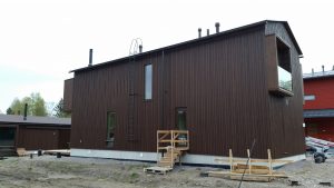 Huoltomaalaus, ulkorakennuksen oven panelointi ja maalaus, Jyväskylä (kuvat maalauksen jälkeen)